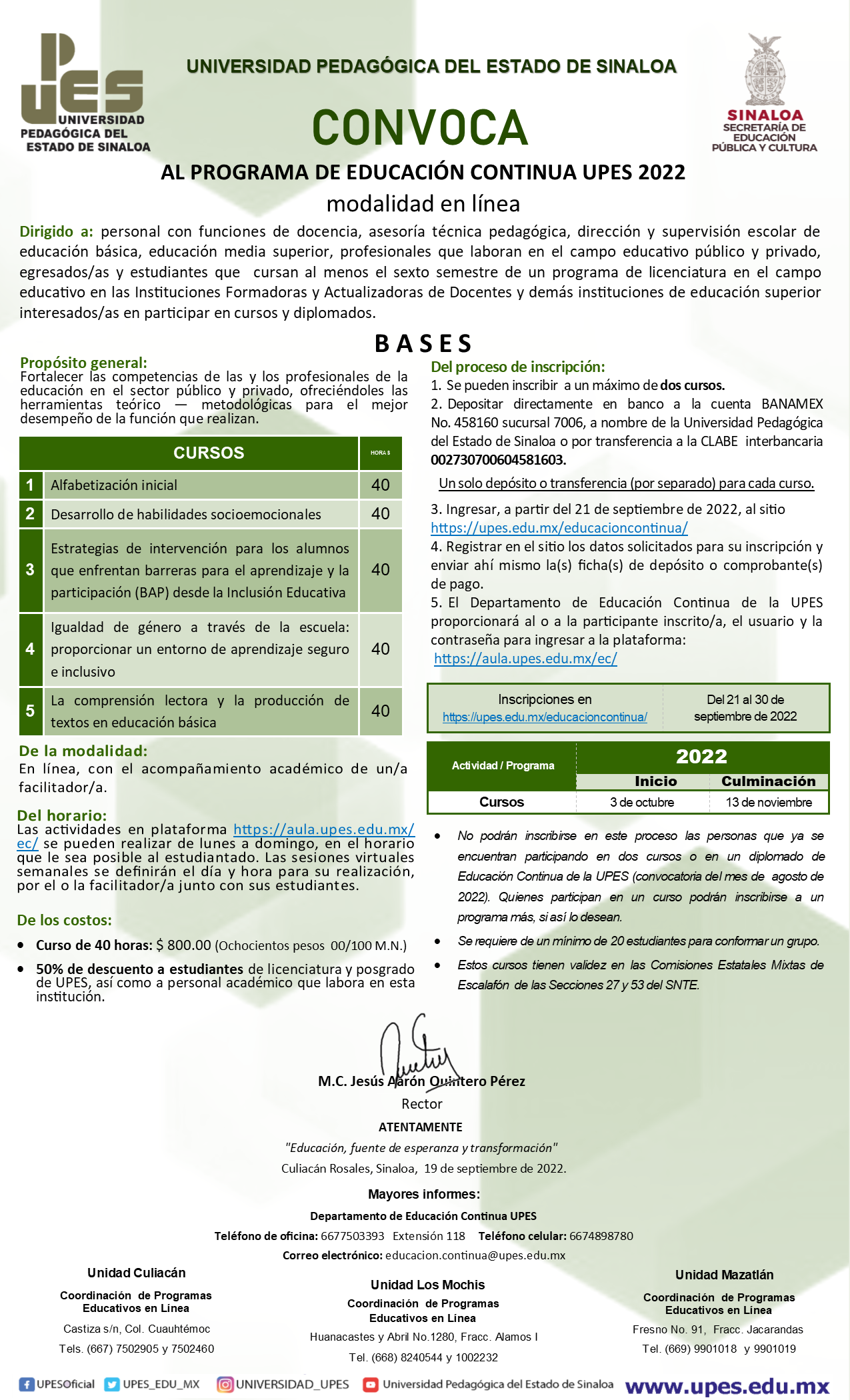 Rectoria (667) 7503393 || Culiacán (667) 7502461 || Los Mochis (668) 8240544 || Mazatlán (669) 9901018