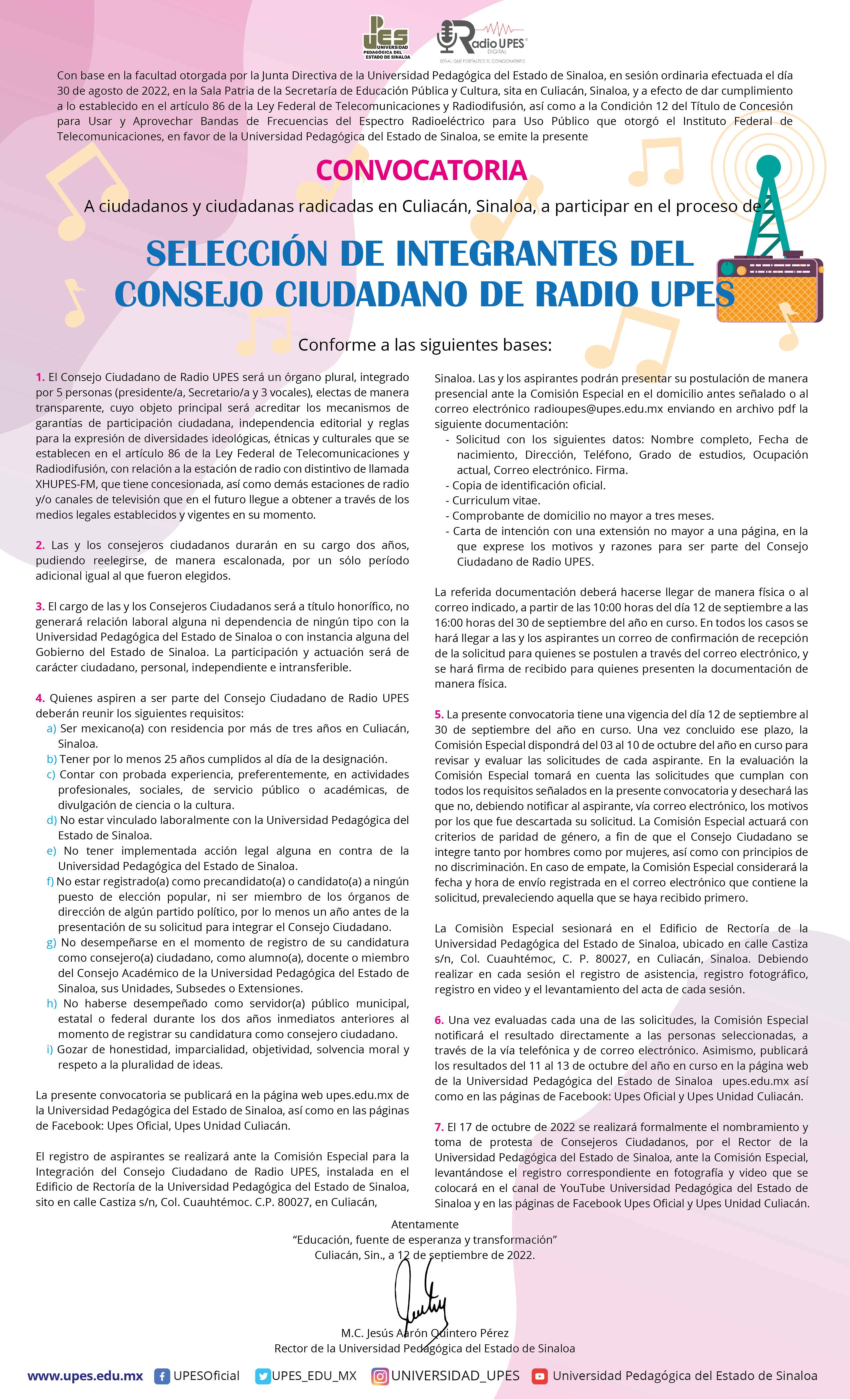 Convocatoria Selección de Integrantes del Consejo Ciudadano de Radio UPES